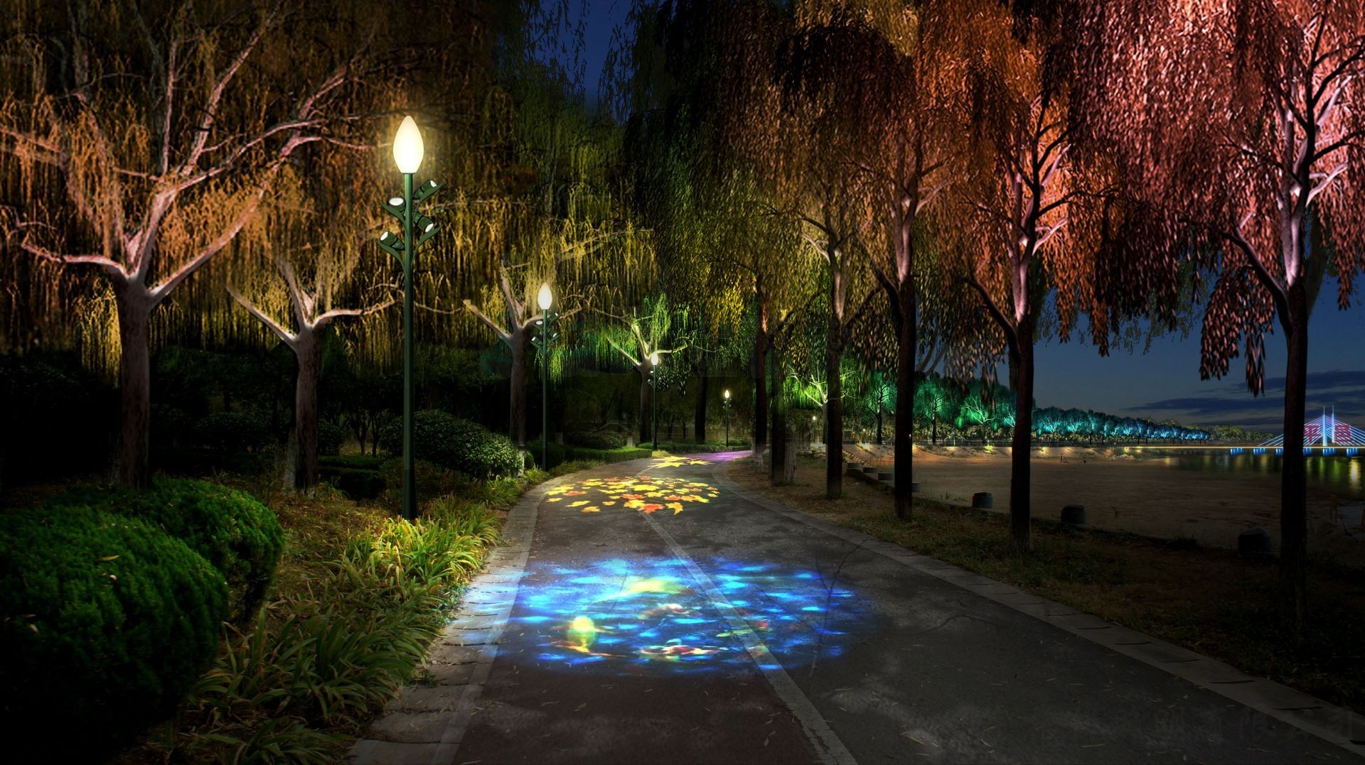 | 项目简介 | 平邑县主要以城市主干道、公园、桥梁、县政府区域、浚河两岸、远期兴水河两岸、城市高速出入口、高铁站、火车站、等重要节点为依据,将平邑县以上主要节点进行重点考察分析,并以这些节点辐射整个县城对平邑县的整体城市夜间环境进行品质提升。 |